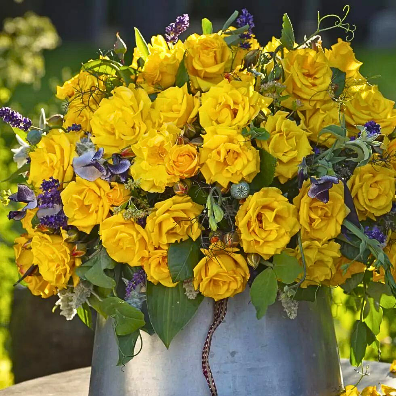 Le Rosier floribunda à une croissance uniforme et à une floraison riche. Les fleurs sont de couleur jaune éclatant.